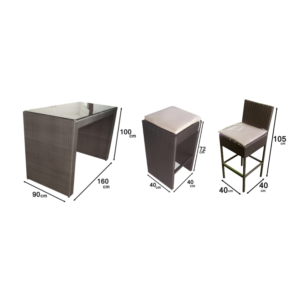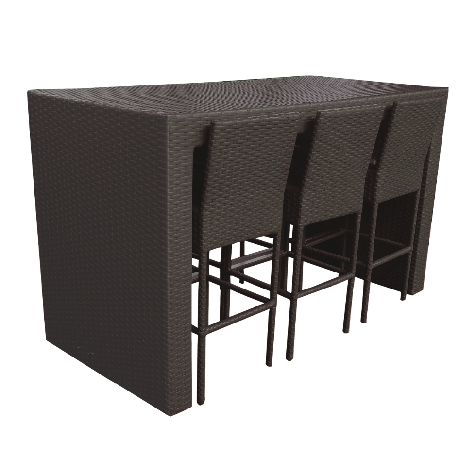 Fabricado en estructura de aluminio reforzado, con acabado en pintura electroestática. Tejido a mano en Rattan Sintético.