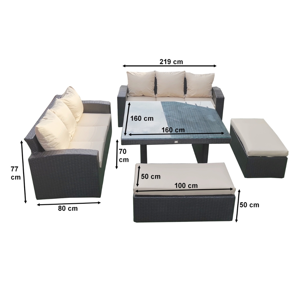 Fabricado en estructura de aluminio reforzado, con acabado en pintura electroestática. Tejido a mano en Rattan Sintético.