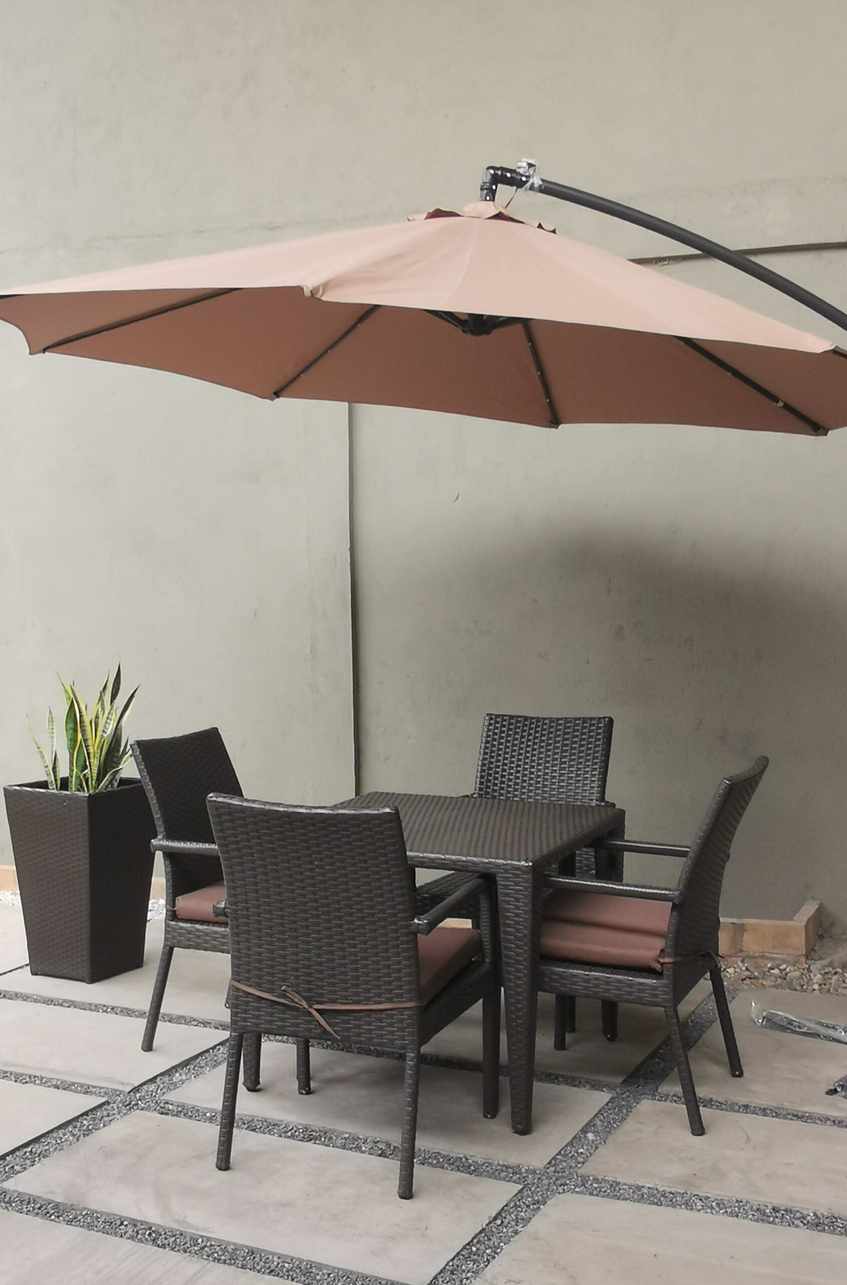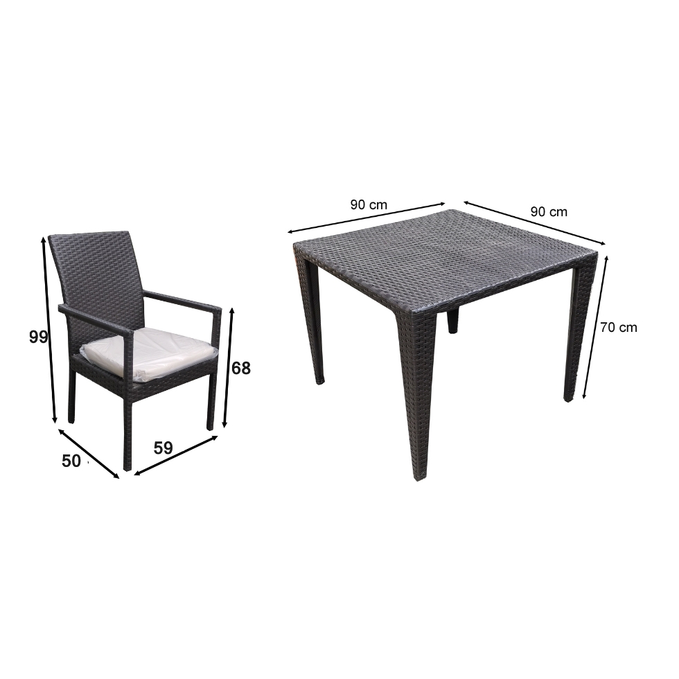 Fabricado en estructura de aluminio reforzado, con acabado en pintura electroestática. Tejido a mano en Rattan Sintético.