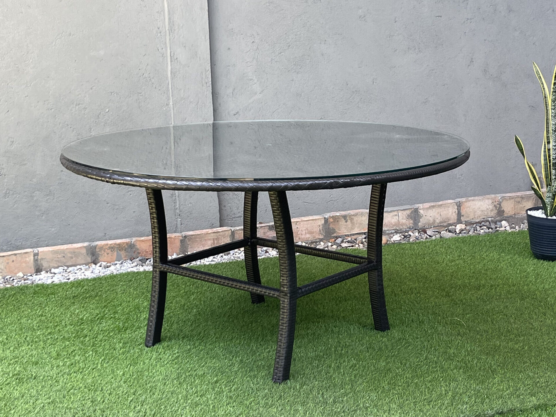 – Una mesa redonda con tope de vidrio.