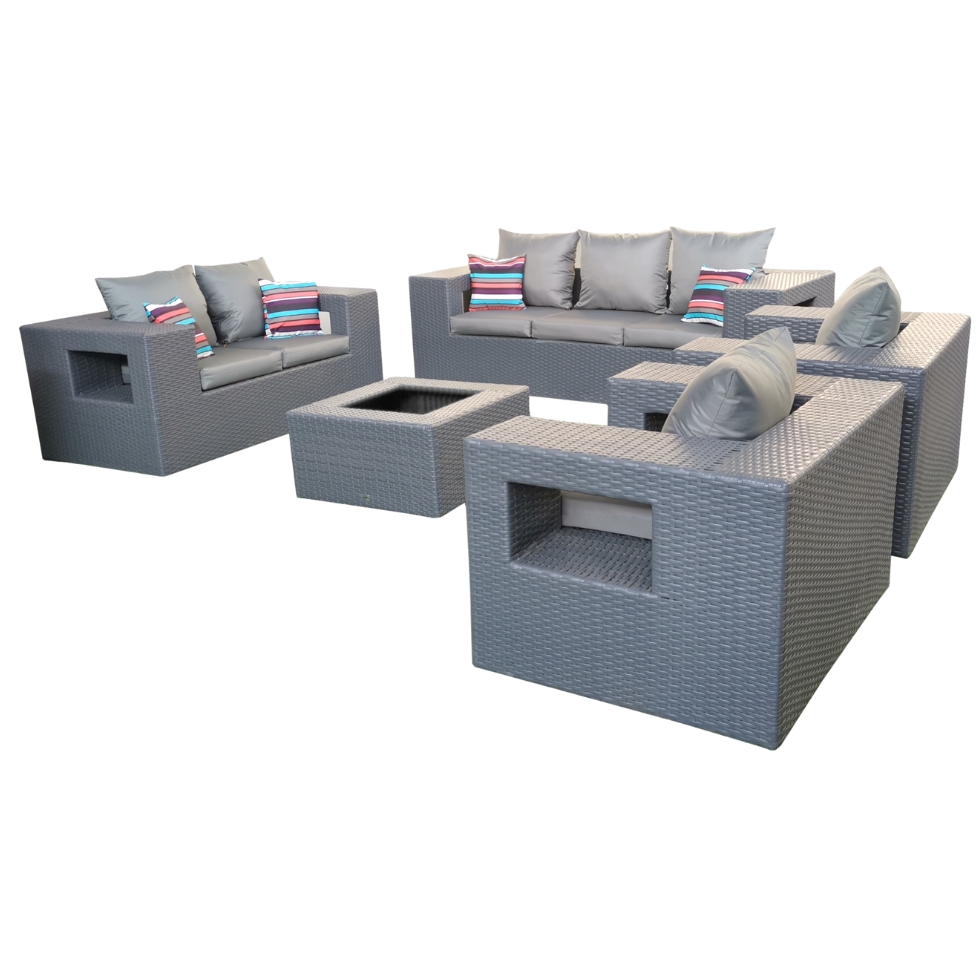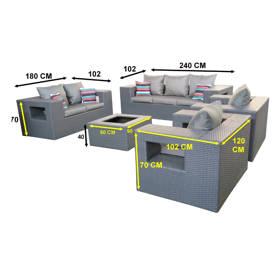 Fabricado en estructura de aluminio reforzado, con acabado en pintura electroestática. Tejido a mano en Rattan Sintético.